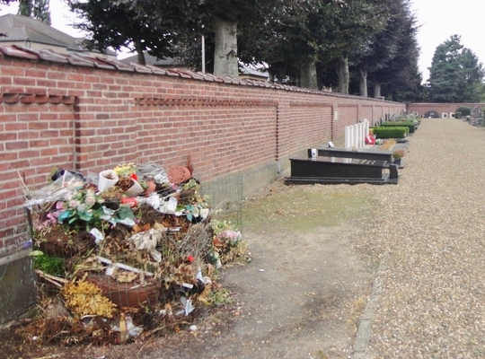 Uit de statistieken blijkt dat we met zen allen thuis netjes het groenafval van PMD en ander vuil scheiden. Op openbare plaatsen wil het niet altijd zo lukken. Neem nu de begraafplaats in As en Niel. Grijze afvalzakken in groene containers, bladkorven vol plastiek en ander restafval… Er is net een rondschrijven geweest dat de gemeente strenger zal toezien op het sorteren van afval in groene containers. Door het gebruik van grijze en groene containers wilde diezelfde overheid net vermijden dat er nog grijze plastiek zakken zouden worden gebruikt. En wat gebruikt diezelfde overheid? ... Grijze vuilniszakken. Bizarre voorbeeldfunctie!